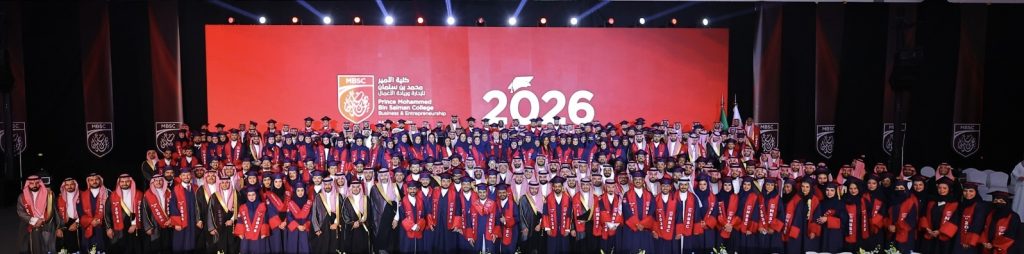 احتفلت كلية الأمير محمد بن سلمان للإدارة وريادة الأعمال بحفل تخرجها الثامن بتاريخ 13 فبراير 2026، لتكريم 596 خريجاً وخريجة من دفعة 2026، وهي الأكبر في تاريخ الكلية حتى اليوم.